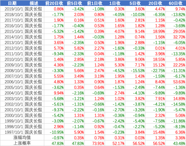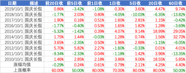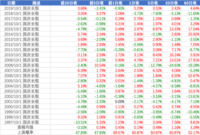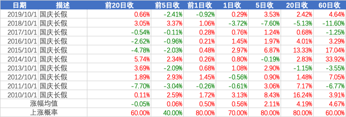复盘了历史数据,发现国庆前后市场呈现一定的规律,供投资者参考。