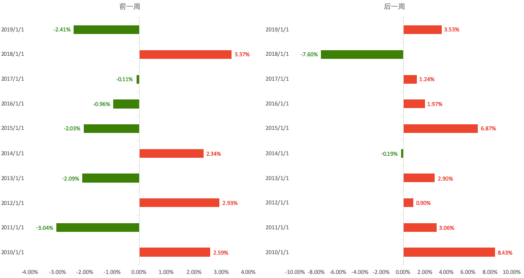 值得注意的是,如果节前是下跌的,假期间消息面平稳,节后上涨概率更大;而如果节前上涨了,假期间稍微不好的消息,节后下跌概率就比较大了。