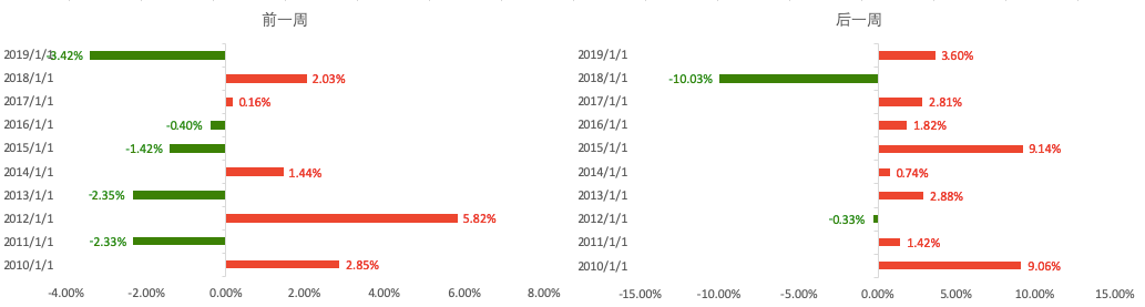 ▲上证指数最近10年国庆节前后一周数据表现